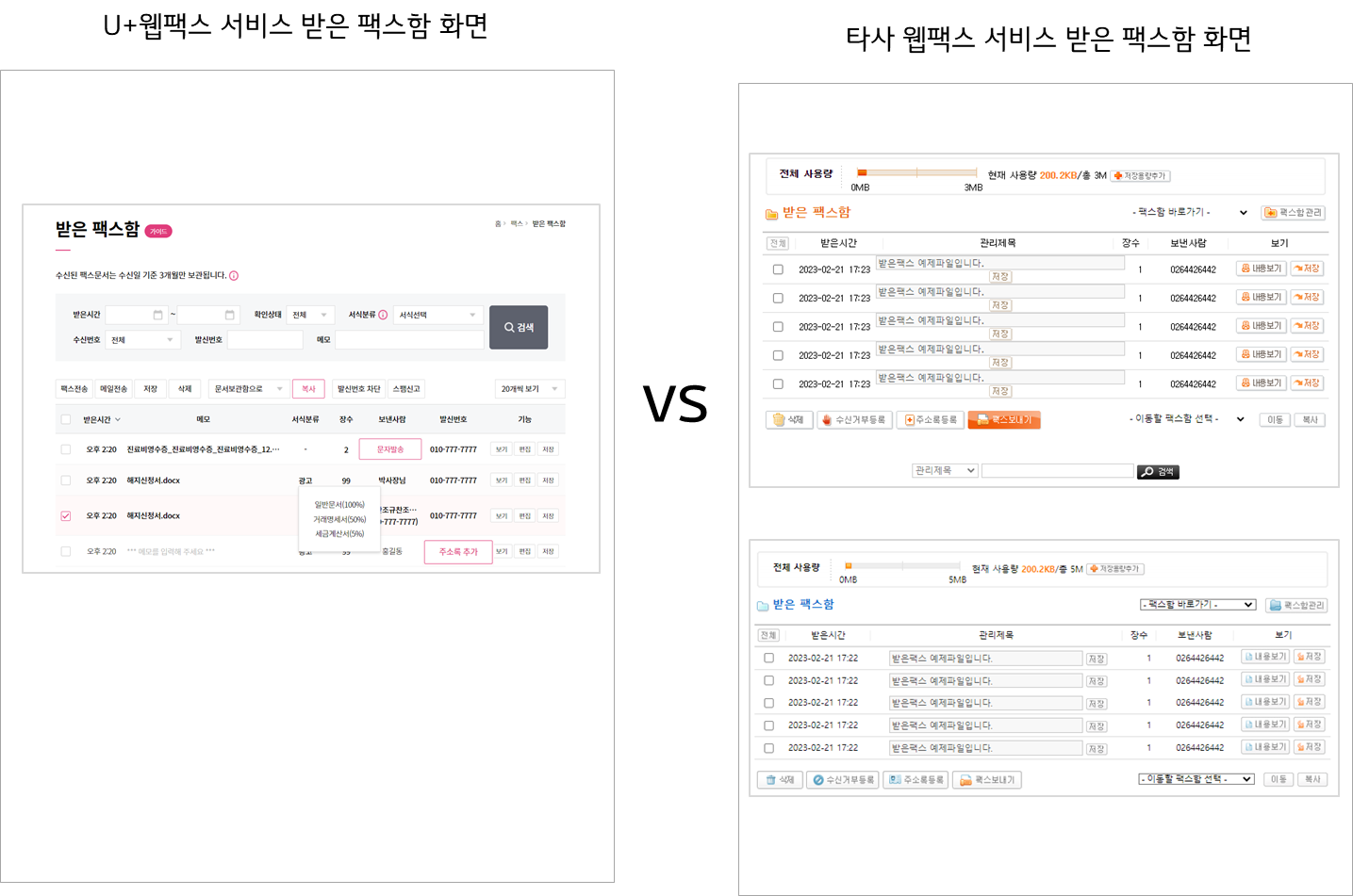 이상 타사의 웹팩스 서비스와 가격을 비교하고, U+웹팩스만의 특장점을 알아보았습니다.
