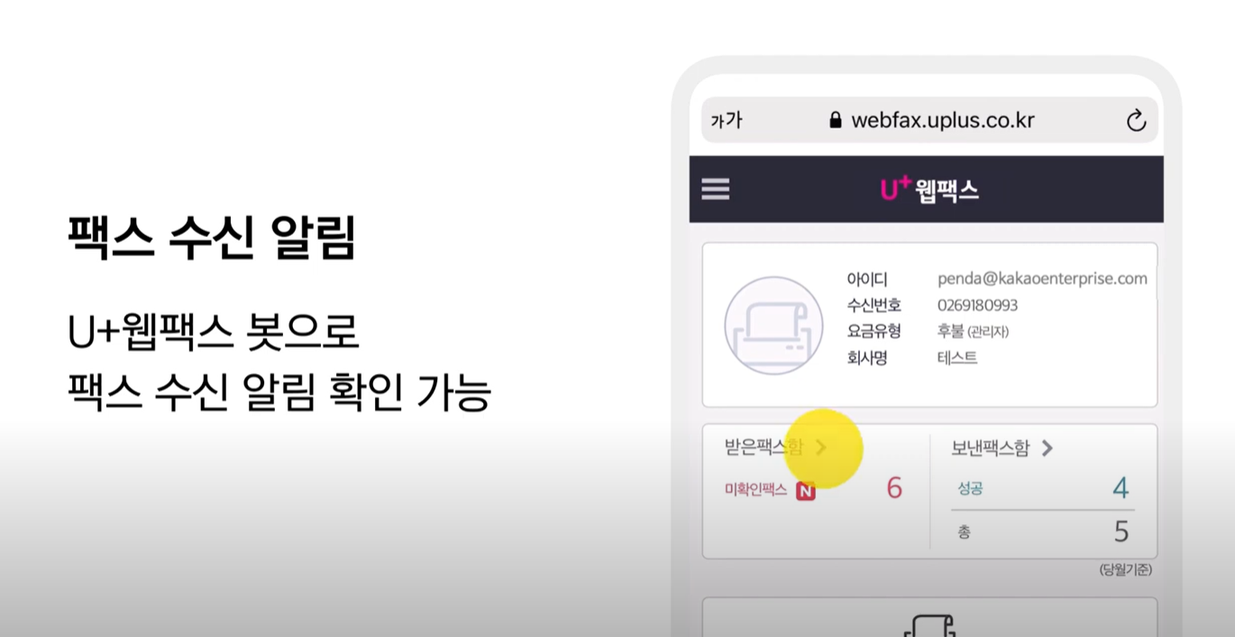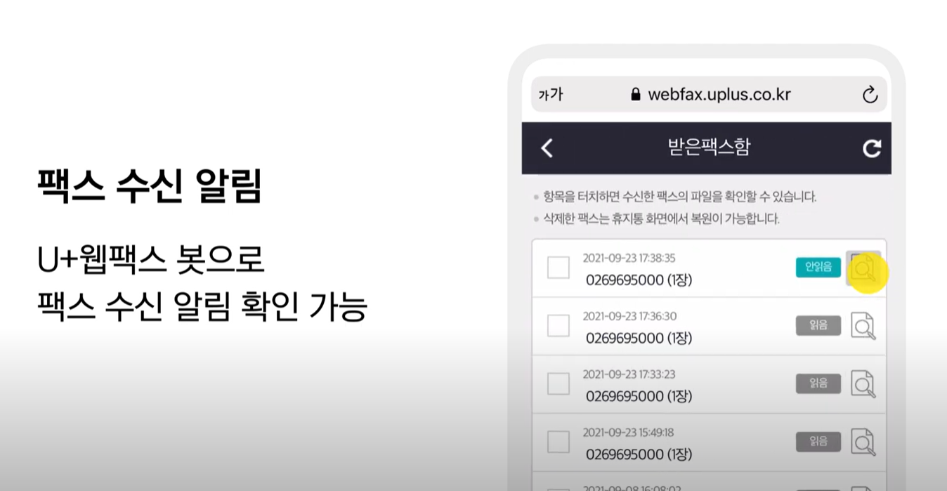 👏 U+웹팩스에서 받은 팩스 알림함으로 연결됩니다.