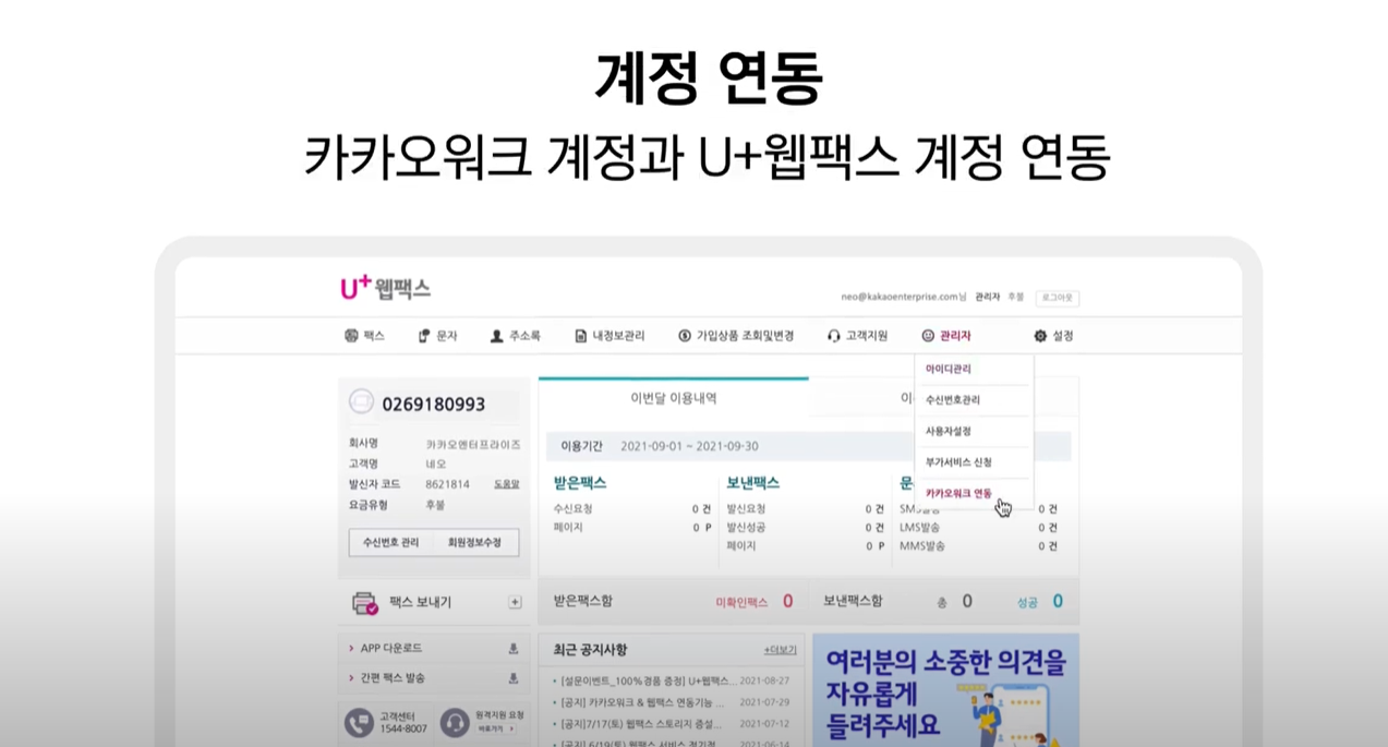 카카오워크 & U+웹팩스 설정연동 Full 버전(유튜브)